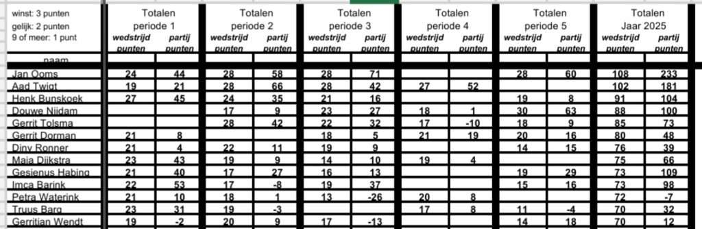 Hieronder volgt nog een keer de totaalstand van de dimicompetitie 2025.